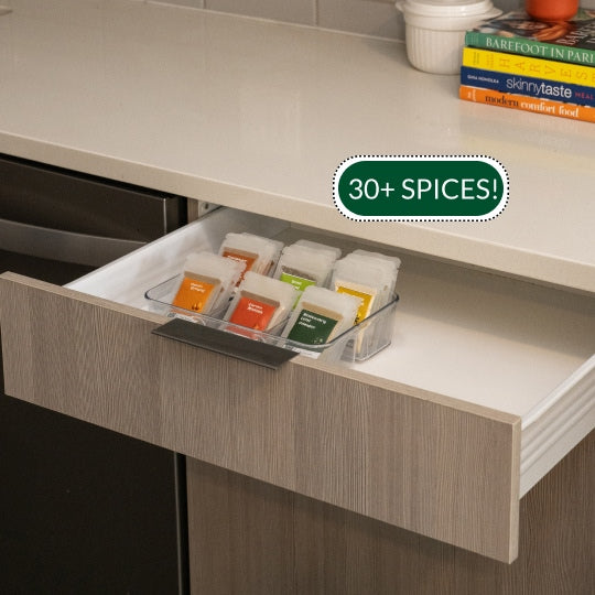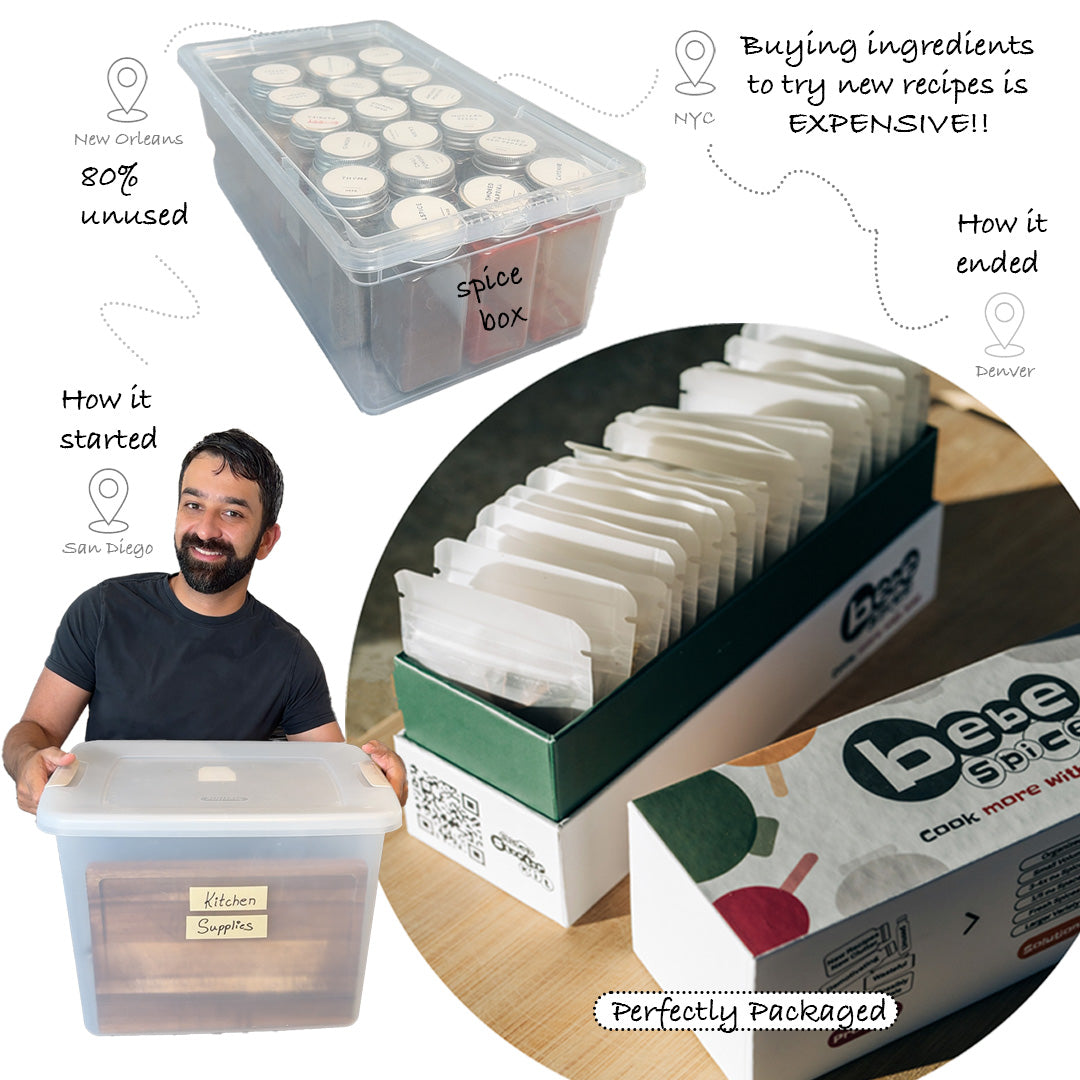 We consistently used only 20% of the spices we carried. Trying new recipes made it worse—it meant buying more single-use ingredients that added clutter and went to waste. So we created small-volume packaged ingredients designed for flavor, variety, and kitchens with less mess.